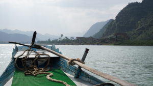 Um weiter Richtung Norden zu kommen, haben wir uns für eine Slow-Boat-Mekong-Tour entschieden. Diese soll uns innerhalb von zwei Tagen an die laotisch-thailändische Grenze bringen und vorbei an einer Bilderbuch-Kulisse! Wir wissen nicht, was uns erwartet und sind freudiger Erwartungen, was Laos die letzten Tage für uns bereithält. Wir kommen am „Hafen“ an und steigen in ein klappriges Boot, die Sitze sind ehemalige Autositze und die Abstände kann man selbst variieren, indem man einfach schiebt. Es gibt ein Loch im Boden namens „Bathroom“ und eine kleine Bar mit Pringels, Oreos und Wasser. Ziel für die erste Nacht ist Pak Beng, auf halber Strecke. Zehn Stunden vorbei an Wasserbüffeln, kleinen Bergdörfern und dichtem Wald kommen wir müde in Pak Beng an. Das kleine Dörfchen besteht zur Hälfte aus Unterkünften für Durchreisende und bekommt leider zu wenig Aufmerksamkeit. Auch uns zieht es direkt nach dem Abendessen ins Bett, nach dem Frühstück warten weitere neun Stunden Bootsfahrt auf uns und wir wollen am nächsten Abend direkt weiter über die Grenze nach Thailand. Der letzte Morgen in Laos beschert uns nochmal Bilderbuch-Kulisse… Frühstück auf der Terrasse mit Blick auf den Mekong und Elefanten, die dort zuhause sind. Der zweite Tag auf dem Mekong ähnelt dem Ersten und wir lassen das Abenteuer Laos gemächlich ausklingen. Wir freuen uns auf Thailand, wollen die Grenze noch überqueren und der Tag bzw. der Abend verspricht noch lang zu werden.