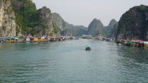Schwimmende Dörfer und Märkte in der Bucht von Cat Ba.