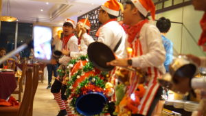 Da wir gesundheitlich noch immer angeschlagen sind, verbringen wir die meiste Zeit im Bett und schauen Disney-Filme in Endlosschleife. Am Heiligabend erspähen wir ein nettes Lokal mit einem Weihnachtsbuffet, extra für Reisende, denn Weihnachten wird in Vietnam nur vereinzelt gefeiert und dann auch anders, als wir es kennen. Die richtigen Festlichkeiten starten erst mit dem „Chinesischen Neujahrsfest“ im Februar. Dieses dauert ganze zwei Wochen und die ganze Region kommt zum Stillstand. Dies ähnelt dann schon eher unserem Weihnachtsbrauch: Familienzeit, Besinnung, Unmengen an Essen.