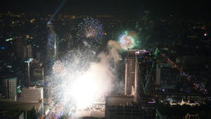 Tolle Aussicht über das Feuerwerk, das über der gesamten Stadt gen Himmel gefeuert wurde.