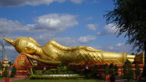 Liegender Buddha. Diese Gestik stellt den letzten Lebensabschnitt von Buddha dar.