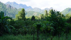 Vang Vieng ist zwar nicht mehr ganz so beschaulich wie vor ein paar Jahren, aber noch immer überschaubar und sehr entspannt. Früher war der Ort als „Tubing-Paradies“ bekannt, man schnappte sich einen Reifen und ließ sich an unendlich vielen Parties den Fluss hinunter treiben. Das Tubing gibt es noch immer, nur die Bars wurden abgeschafft, denn viele konnten die Balance zwischen Alkoholkonsum und Selbsteinschätzung nicht finden und es kam zu tödlichen Unfällen. Tubing steht nicht auf unserer „To-Do-List“, wir wollen Wandern, unsere Füße wieder spüren und die Landschaft langsam genießen. Gerüstet mit Sonnencreme und Wasser machen wir uns nach einem reichhaltigen Frühstück auf den Weg Richtung „Blue Lagoon“… auf dem Weg locken immer wieder Abzweigungen mit Höhlen, Wasserfällen, Aussichtspunkten und Wasserstellen… unser Weg dauert den ganzen Tag und wir genießen jeden schwitzenden Meter vorbei an kleinen Bergdörfern, Kühen, Feldern, Flüssen. Kurz vor Sonnenuntergang kommen wir an der Blue Lagoon an und wir stellen fest: Der Weg war hier das Ziel. Denn die angepriesene Wasserstelle hat nicht viel mit einem Paradies zu tun. Lianen, um ins Wasser zu springen, Absprungmöglichkeiten in den Bäumen für die ganz Mutigen und ein Selfie-Foto-Spot, mehr ist hier leider nicht… eine Alternative zum Tubing, die man für die Touristen geschaffen hat. Wir sind froh, dass der Weg soviel mehr zu bieten hatte! Zurück fahren wir in die Stadt, suchen uns ein Restaurant mit Flussblick und stärken uns mit Curry und Klebreis.