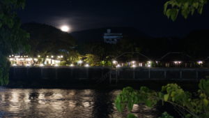 Blick über den Nam Xong River von der Restaurant-Terrasse unserer Unterkunft in Vang Vieng.