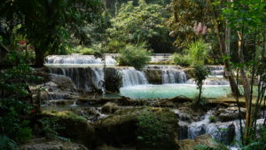 Wassertreppen am Kuang Si Waterfall. Dieser befindet sich ca. 30 km südwestlich von Luang Prabang.