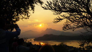 Sonnenuntergang über dem Mekong. Blick vom Mount Phousi in Luang Prabang.