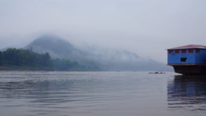 Nebeliger Start in unsere 2-tägige Tour über den Mekong in Richtung Thailand.