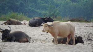 Auch an Wasserbüffeln mangelt es nicht entlang des Mekong-Ufers.