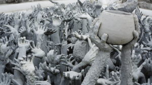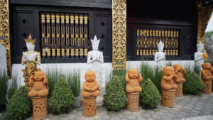 Wir leihen uns am nächsten Morgen einen Roller und erkunden die Spots, die man hier gesehen haben muss bzw. die in jedem Reiseführer empfohlen werden: „The White Temple“ und „The Black House“. Vom weißen Tempel sind wir sehr beeindruckt und lassen uns nach der Besichtigung noch im angrenzenden Museum mehr vom Künstler erzählen. Im Gegensatz dazu finden wir das schwarze Haus nicht nur sehr skurril sondern auch sehr abstoßend und ärgern uns, dass wir dies mit Geld unterstützt haben. Der Künstler hat hier mit Tierknochen, Tierhaut, Zähnen und alles was von toten Tieren übrig bleibt sogenannte Kunst erschaffen. Wir laufen vorbei an unzähligen Krokodilhäuten, Bärenkrallen und ausgestopften Tigerköpfen, Affen und anderen Kleintieren. Wir finden es eklig, anmaßend und möchten allen zukünftigen Besuchern sagen: „Meidet es!“, „ Unterstützt es nicht!“