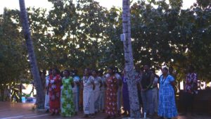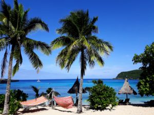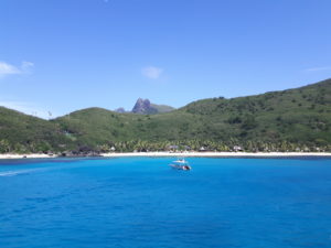 Vom Hafen der Hauptinsel startet am nächsten Morgen unser Boot zu den Mamanucas und den Yasawas Inseln. Immer wieder hält das Boot vor kleinen Inseln mit traumhaften Stränden. Kleinere Boote kommen, Menschen steigen aus und zu. Transfer auf den Fiji’s. Nach 2 Stunden holt auch uns ein kleines Boot ab und wir steuern unser erstes Ziel an: das Octopus Resort! Am Strand singt das Personal für uns und wir bekommen einen Cocktail zur Begrüßung. Wir versuchen unsere Euphorie zu zügeln, aber all unsere Erwartungen werden übertroffen. Alles hier hat Resort-Niveau! Wir sind dankbar, dass neben all den Bungalows und Strand-Villen der Eigentümer es auch „Low Budget“-Reisenden möglich macht, dem
